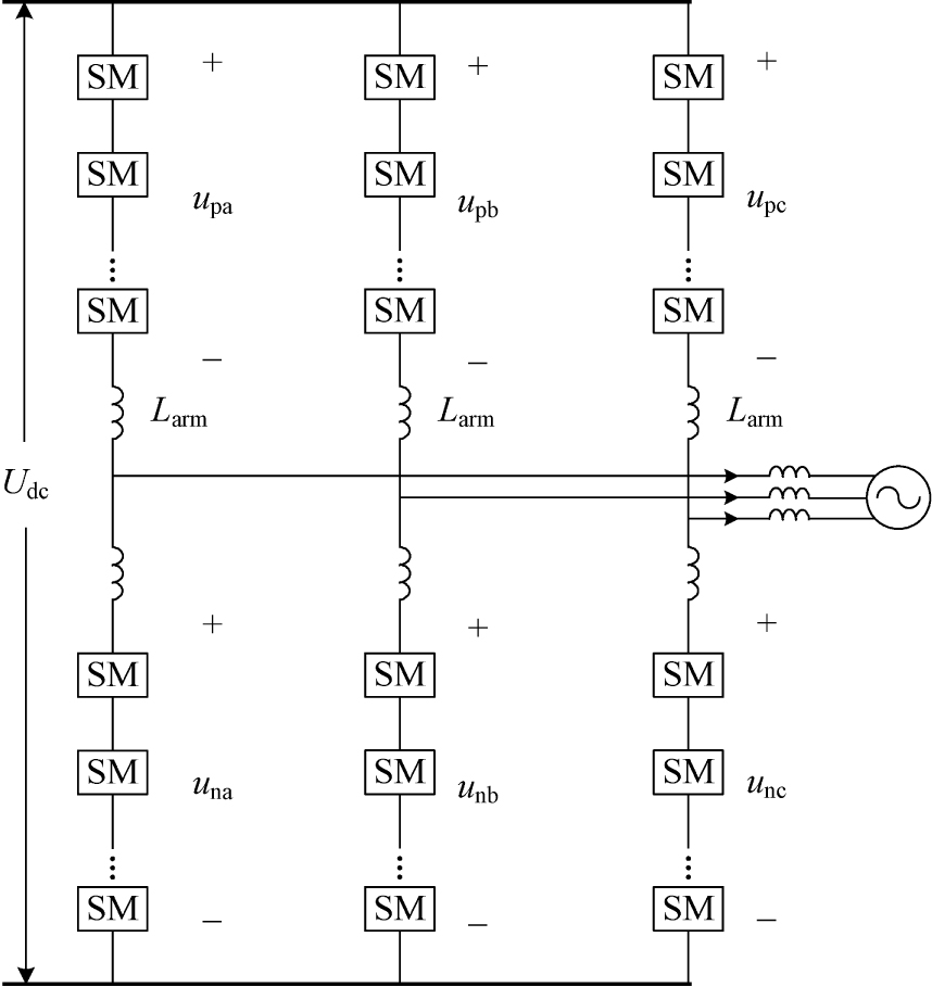 图1所示为三相MMC拓扑图,变换器的每个桥臂由若干个相同结构的子模块和一个桥臂电感