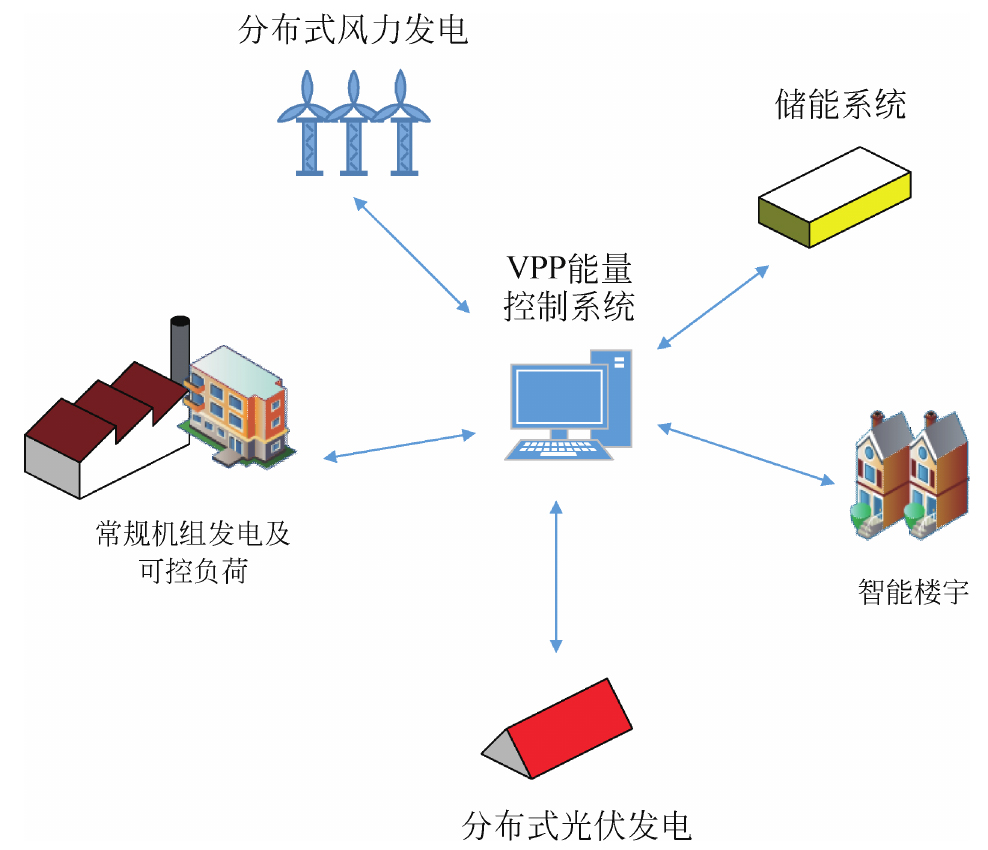 随着世界人口增长和经济快速发展,能源紧缺越发成为公众关注的严峻问题,同时,被过分依赖的煤炭、石油等化石燃料的过度使用产生的大量碳排放也将给环境带来持续不断的不利影响[1,2,3]。鉴于此,分布式能源得到了广泛的应用,同时为平抑可再生能源[4]的随机性和波动性,在此引入虚拟电厂(virtual power plant, VPP)来有效聚合不同类型数量、地域结构的分布式电源(distributed generation, DG)以保证系统运行的稳定性和经济性[5,6,7]。
