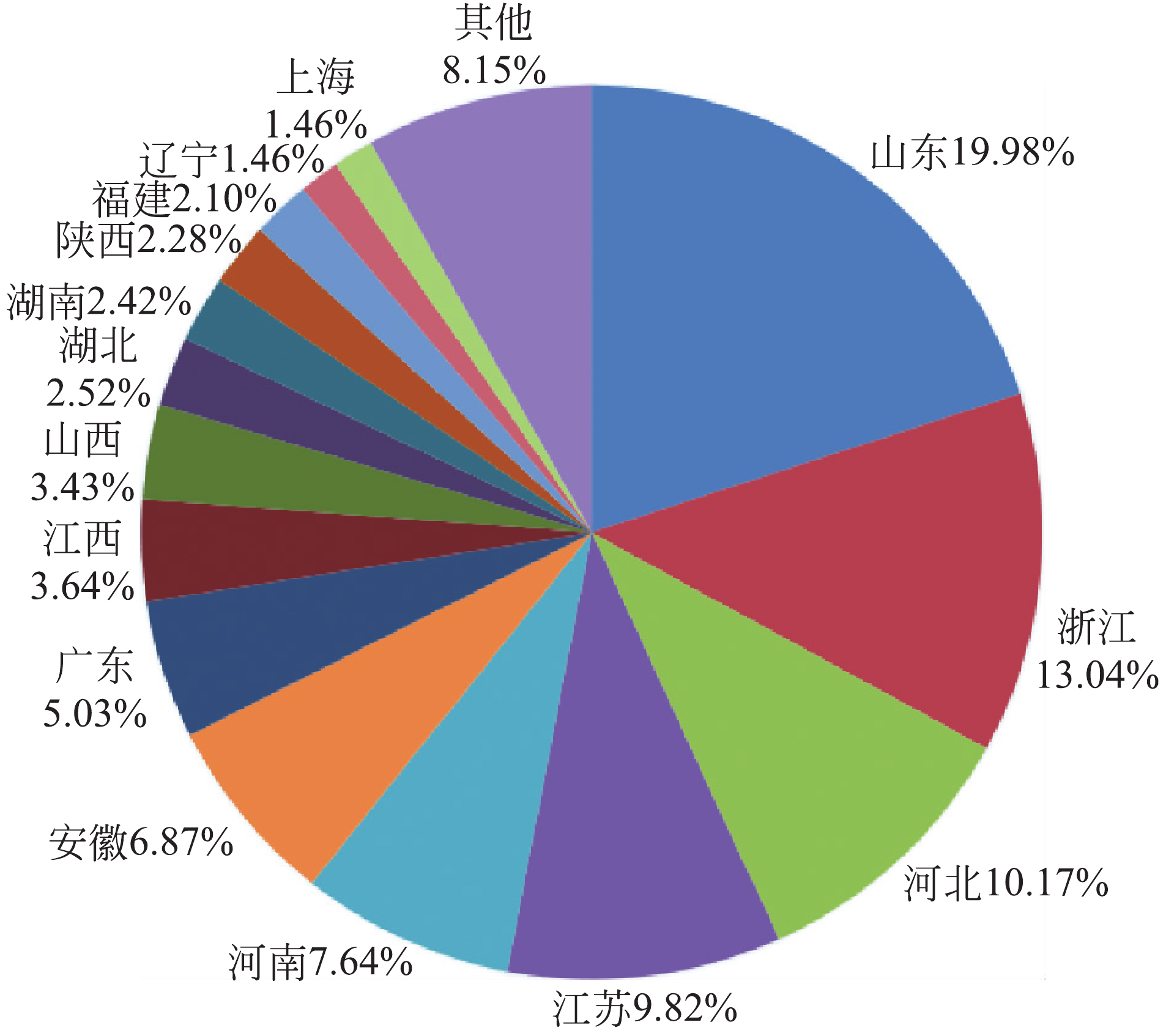 | 图7 我国分布式光伏装机容量分布情况 Fig.7 Distribution of installed capacity of distributed photovoltaic in China |