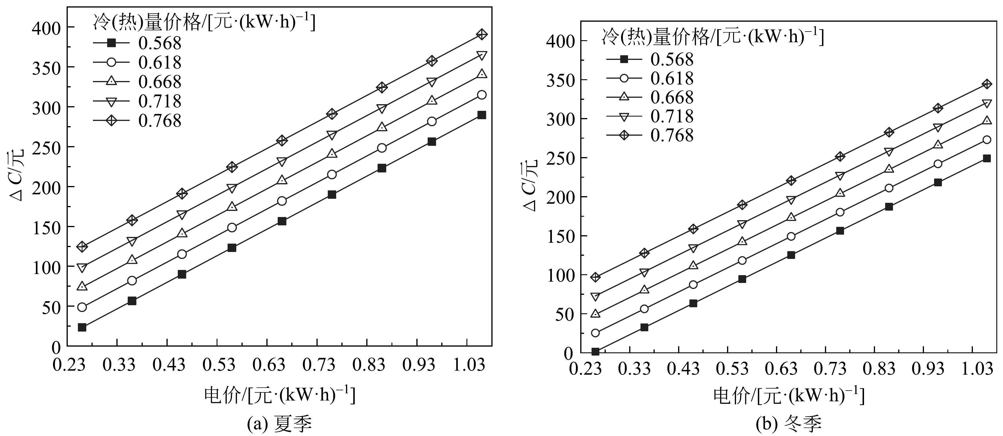 | 图5 满负荷费用差值随冷(热)量价格和电价变化曲线 |