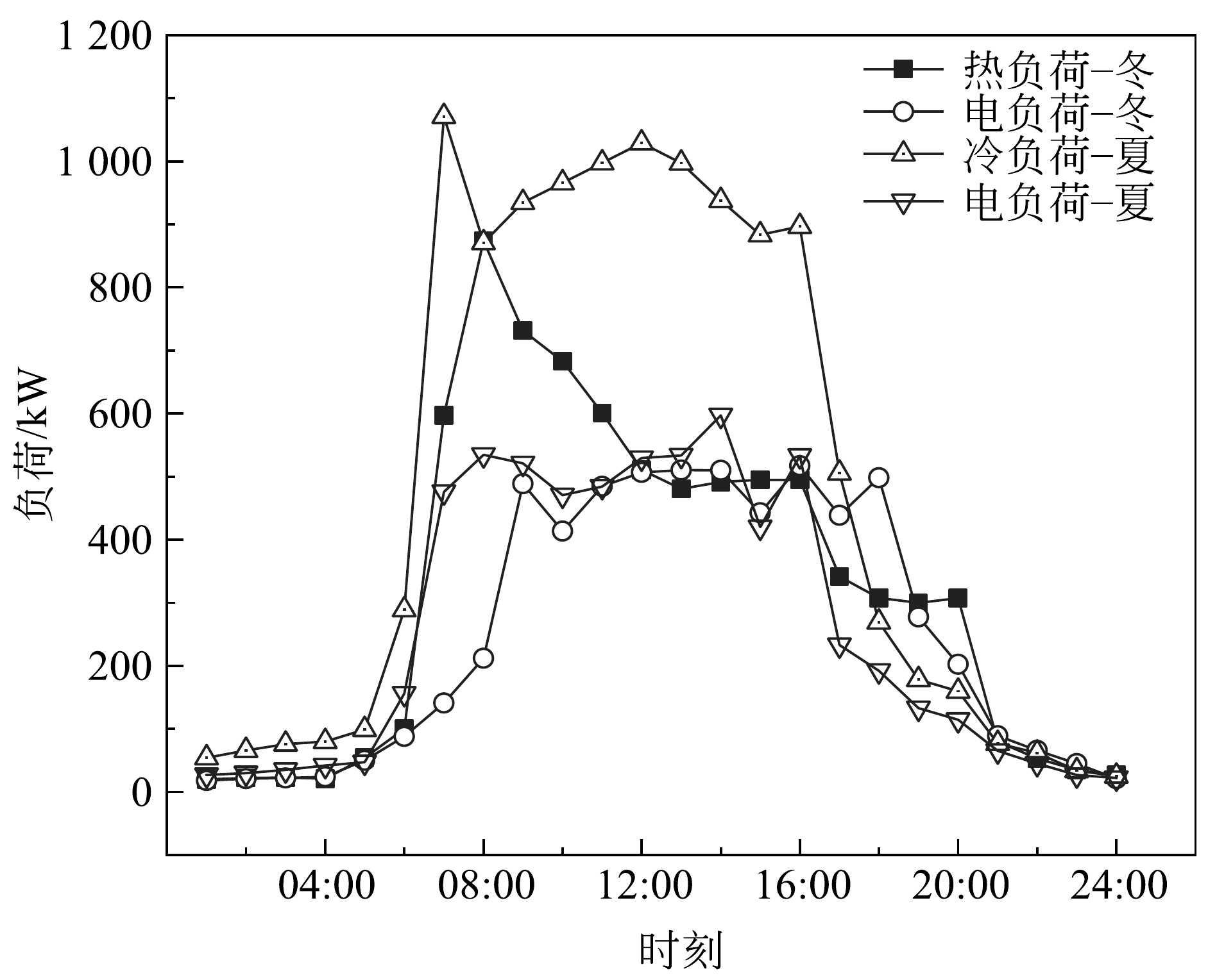 | 图10 大厦冬、夏季典型日逐时负荷分布图 |