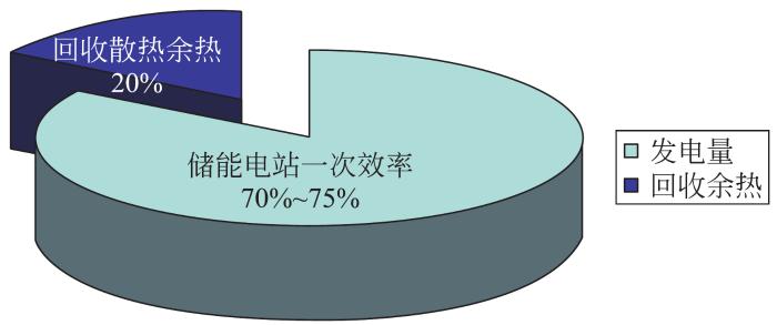 针对这一特性,通过在ESS集中配置带能量回收的热管理系统,吸收VRFB储能系统的散热,为储能系统提供冷却所需要的冷媒水的同时,还可为用户端输出生活热水、采暖热水或工艺热水,提高电站的总体效率,使ESS的综合效率由70%~75%提高至90%左右,实现了ESS电、热联产联储,从而获得可观的节能经济效益和环保生态效益。图7为通过采用能量回收后的VRFB ESS的能流平衡图。