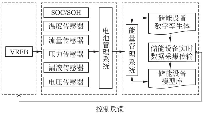 面向新能源的VRFB ESS设备数量多、自然环境复杂、监测难度大。监测内容除了荷电状态/健康状态(SOC/SOH)外,还包括电堆电压、电流、电解液的流量、液位、压力、温度及漏液监测等。对于大规模储能,传统方式收集的信息较为零散,难以掌握全部电池系统的健康状态,增加了运维负担。