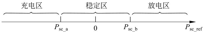 一般的,当超级电容功率参考值Psc_ref>0时表示超级电容放电,Psc_ref<0表示超级电容充电。但是波动功率在临界值附近剧烈变化会导致超级电容在充放电模式间频繁切换,这不仅会缩短超级电容的使用寿命,而且会影响系统的稳定性。因此设置功率稳定裕度来避免此种情况发生,如图6所示。图中,Psc_a、Psc_b为功率稳定裕度的边界值。当Psc_ref<Psc_a时,超级电容处于充电模式;当Psc_ref>Psc_b时,超级电容处于放电模式;当Psc_a<Psc_ref<Psc_b时,超级电容保持原来模式不变。