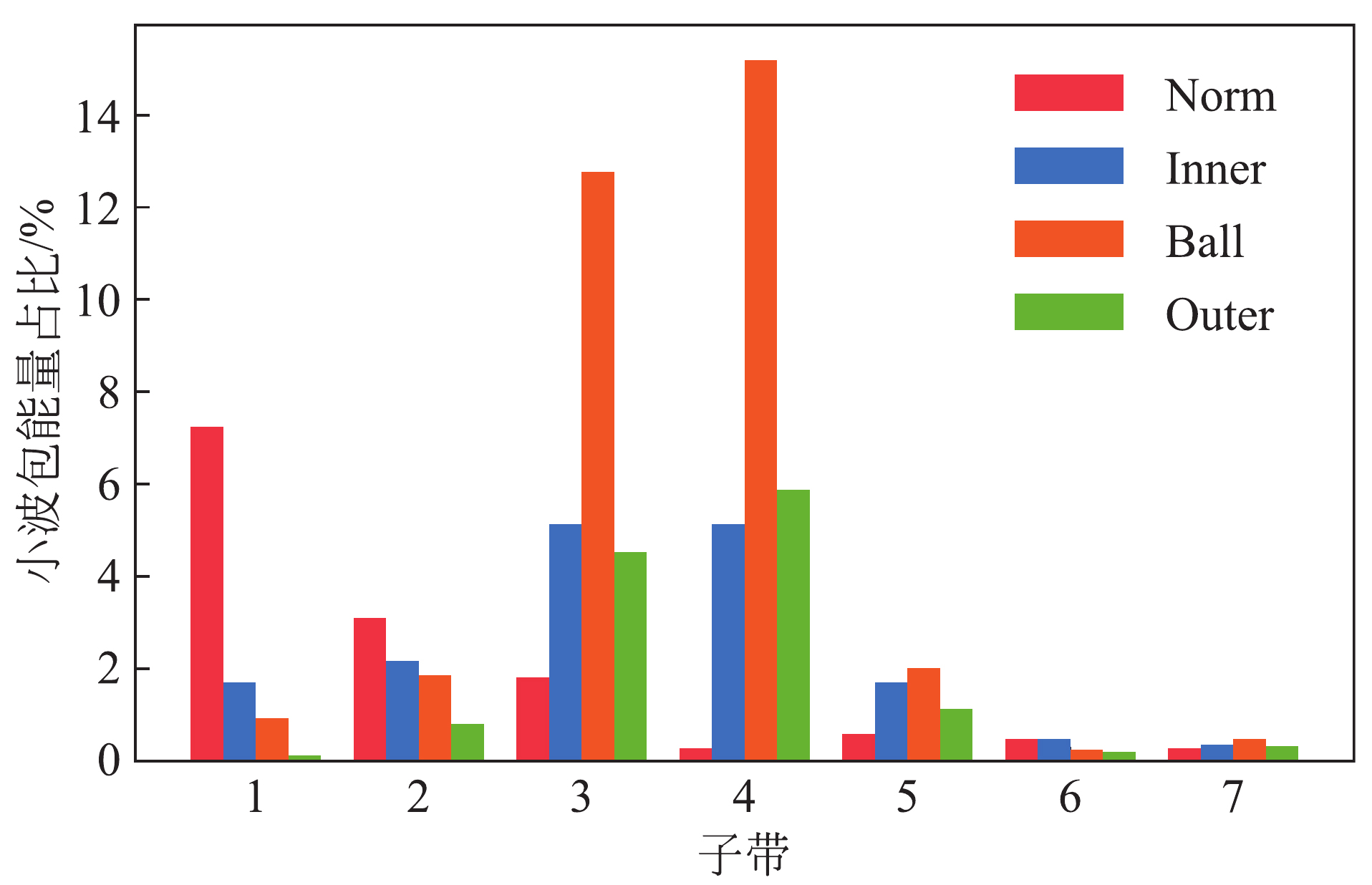 | 图4 小波包分解各子带能量(不同故障类型) |