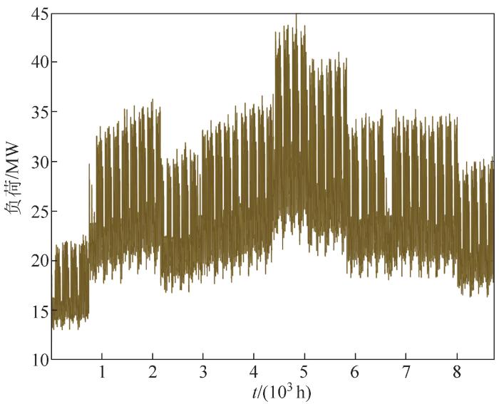 近年来,国内外专家对微电网设备容量的规划进行了大量研究[12,13,14],提出了一系列容量优化配置方法。文献[15]针对风光蓄互补发电系统,提出一种容量优化配置方法,对风、光、蓄电池的容量进行最优配置。针对系统独立和并网运行,利用风光互补特性和分时段优化策略,得出只需较小的蓄电池容量即可满足高供电可靠性,满足负荷需求,并验证了入网功率的波动性。文献[16]考虑了储能系统的内部特性,根据不同约束条件和优化目标,建立了3种优化方案,验证了基于储能系统内部特性建模方法的有效性。文献[17]分别提出了并网型和独立型微电网双层优化模型。上层采用了基于非支配排序遗传算法Ⅱ(non-dominated sorting genetic algorithm Ⅱ,NSGA-Ⅱ)的多目标遗传算法计算最优配置,下层采用混合整数线性规划算法计算最优运行方案。文献[18]基于带精英策略的非支配排序遗传算法,在新能源高渗透环境下对电-氢储能进行优化配置,并以最小生命周期成本(life cycle cost,LCC)、系统网损、联络线功率偏差、负荷波动和电压波动为目标建立了多目标优化模型。文献[19]建立了光伏储能系统双层优化模型。上层模型以年综合费用成本最小作为优化目标,优化分布式光伏和储能系统配置容量;下层模型以系统网损最小作为优化目标,优化储能系统安装地点。