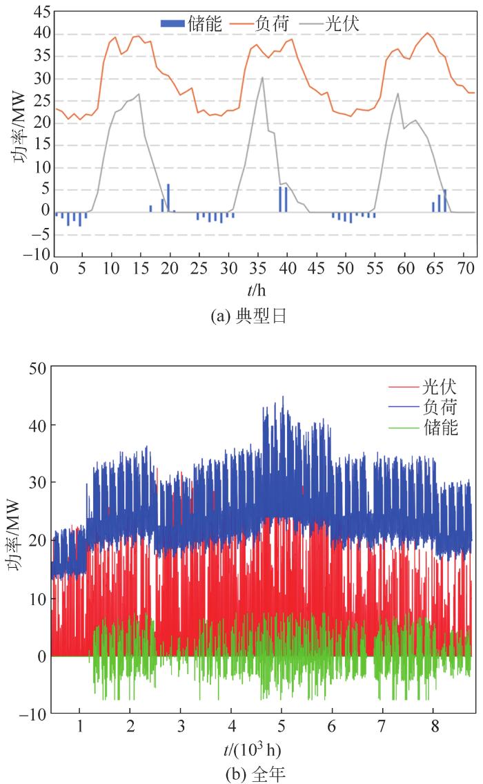 本文针对工业园区电网供电容量不满足用电负荷需求的场景开展研究,对光伏系统和储能系统进行详细建模,综合考虑系统供电可靠性和内部收益率,实现了微电网系统光储容量配置的全局最优效果,得出以下结论: