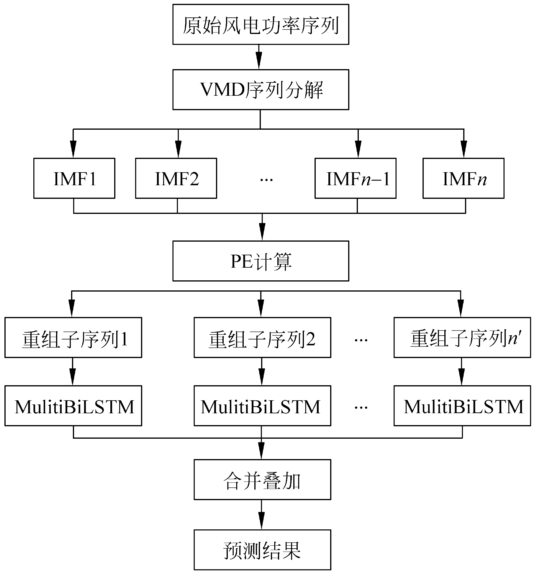 VMD-PE-MulitiBiLSTM预测模型流程图