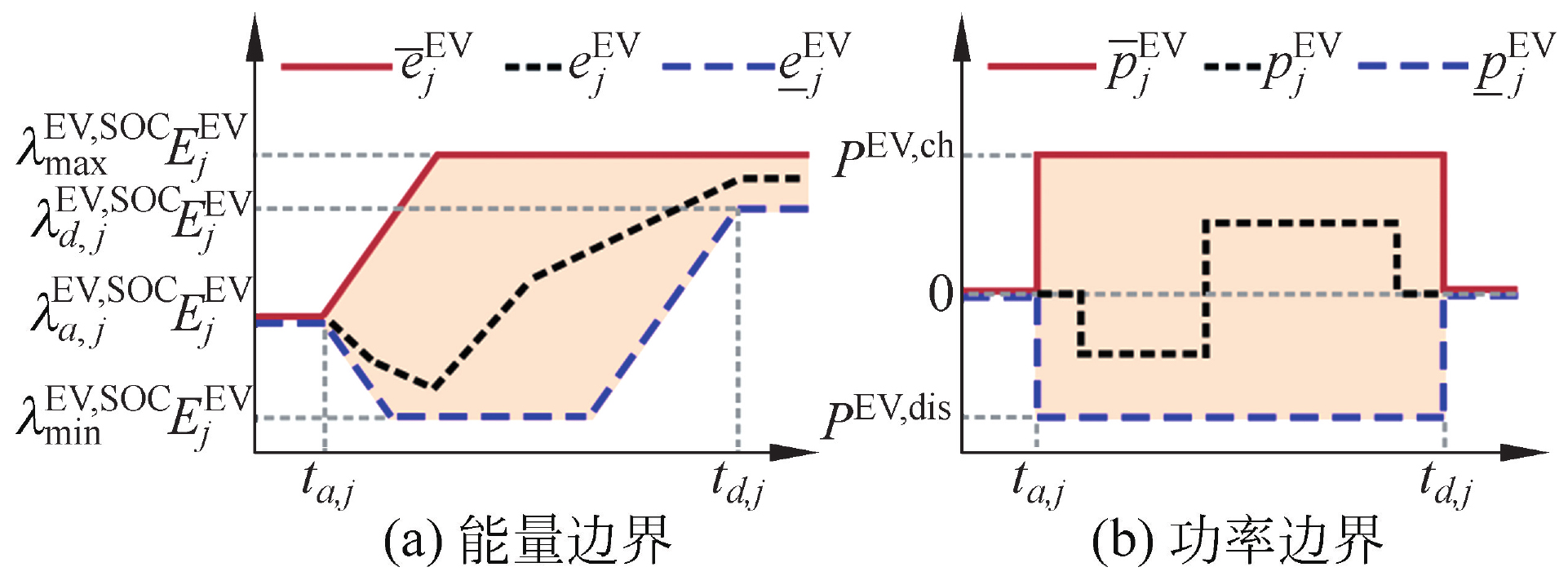 | 图1 考虑车网互动的单体EV能量及功率边界 |
